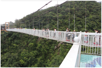 【牛魚嘴風(fēng)景區(qū)】它把整個(gè)風(fēng)景區(qū)設(shè)計(jì)成兩大部分,第一部分以“嶺南第一溪” 景點(diǎn)為主線,索溪而上,奇花異草、老樹古藤、怪石林立、流水潺潺。景區(qū)的第二部分以“牛魚湖”景點(diǎn)為主線,以引導(dǎo)休閑度假為目的。主要娛樂設(shè)施有:湖中歡樂橋(10 座)、自然山石親水游永場(chǎng)、滑草場(chǎng)、沿溪園林燒烤場(chǎng)、錦鯉池等。整個(gè)湖光山色極為誘人,尤其你在漫步或游覽湖中,看見碧綠清晰見底湖水,一定會(huì)讓你流連忘返、樂于其中。全廣東至長(zhǎng)落差至高的【玻璃橋】+【滑道】,在牛魚嘴風(fēng)景區(qū)嶺南第一溪,總長(zhǎng) 219 米,橋面距谷底相對(duì)高度約 188 米。橋面全部采用透明玻璃鋪設(shè),整個(gè)工程無鋼筋混凝土橋墩。人生有許多橋,唯獨(dú)玻璃橋最難過.充滿誘惑玻璃橋,每天都不少勇者在挑戰(zhàn),我們也去體驗(yàn)一下!GO,GO,GO。